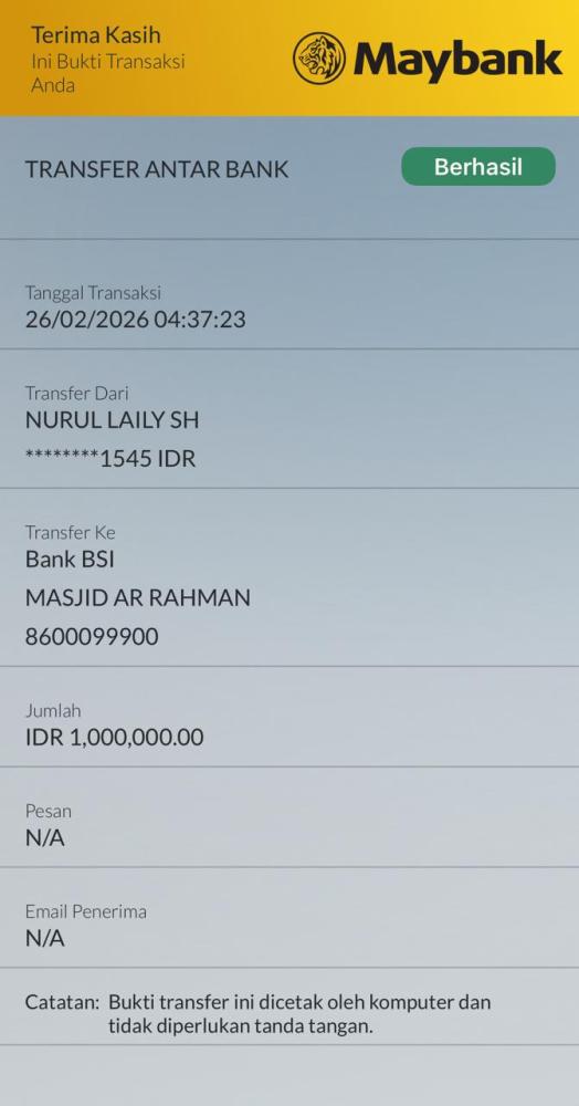 Donasi Pembebasan Lahan Masjid Ar Rahman
